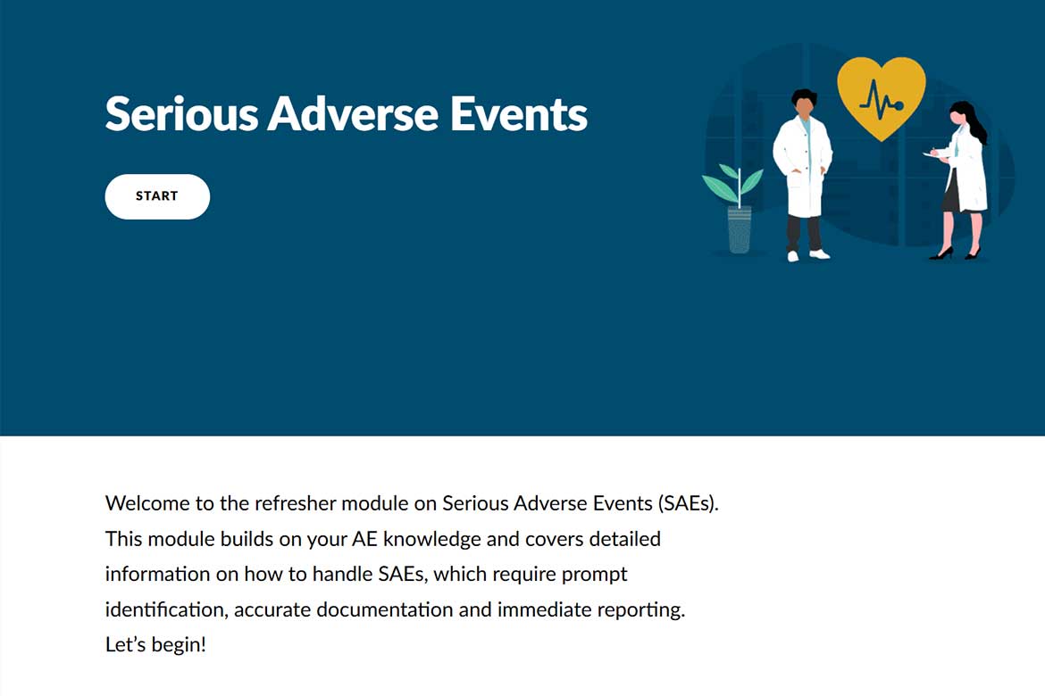 This module covers how to identify, assess, and report Serious Adverse Events (SAEs), outlining key criteria such as hospitalisation, death, life-threatening conditions, disability, and other medically important events.