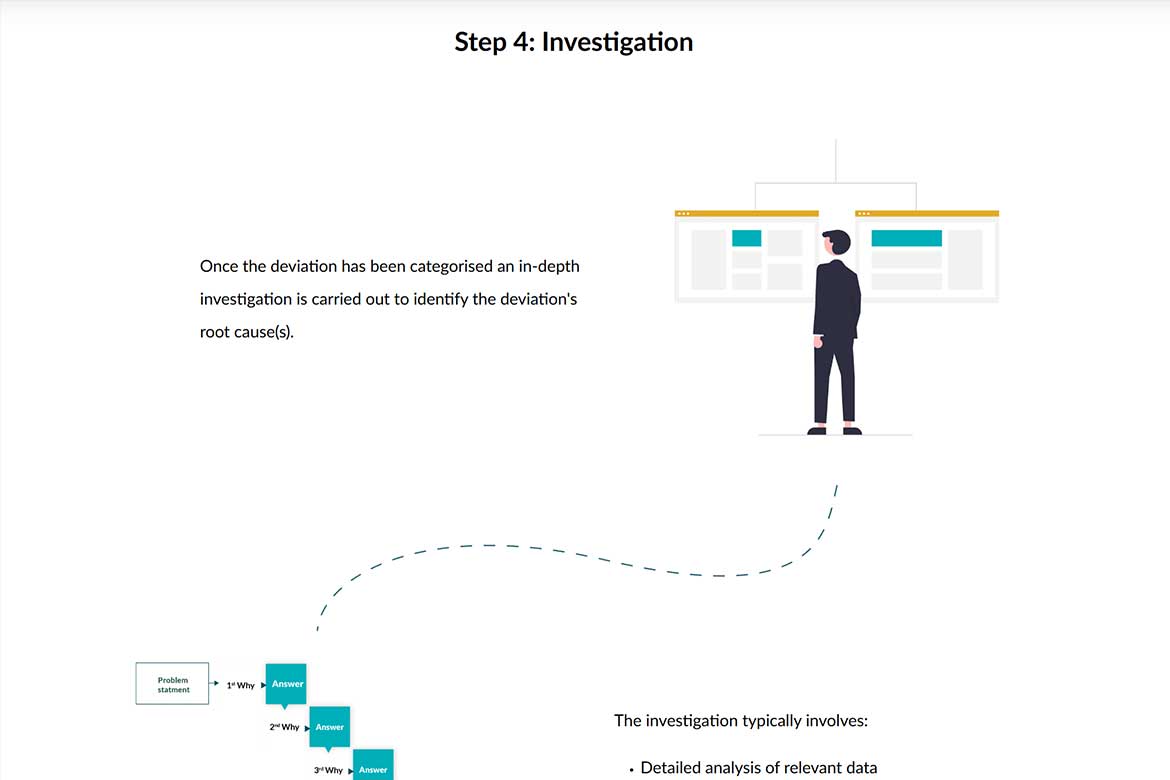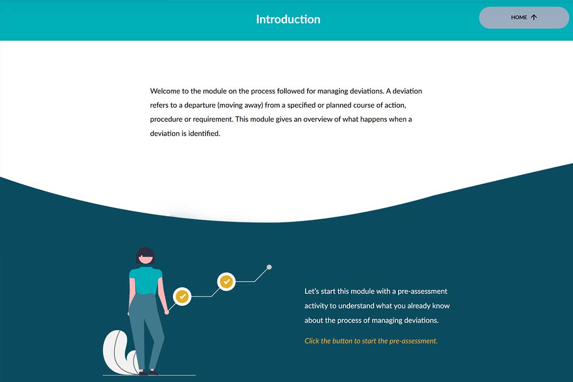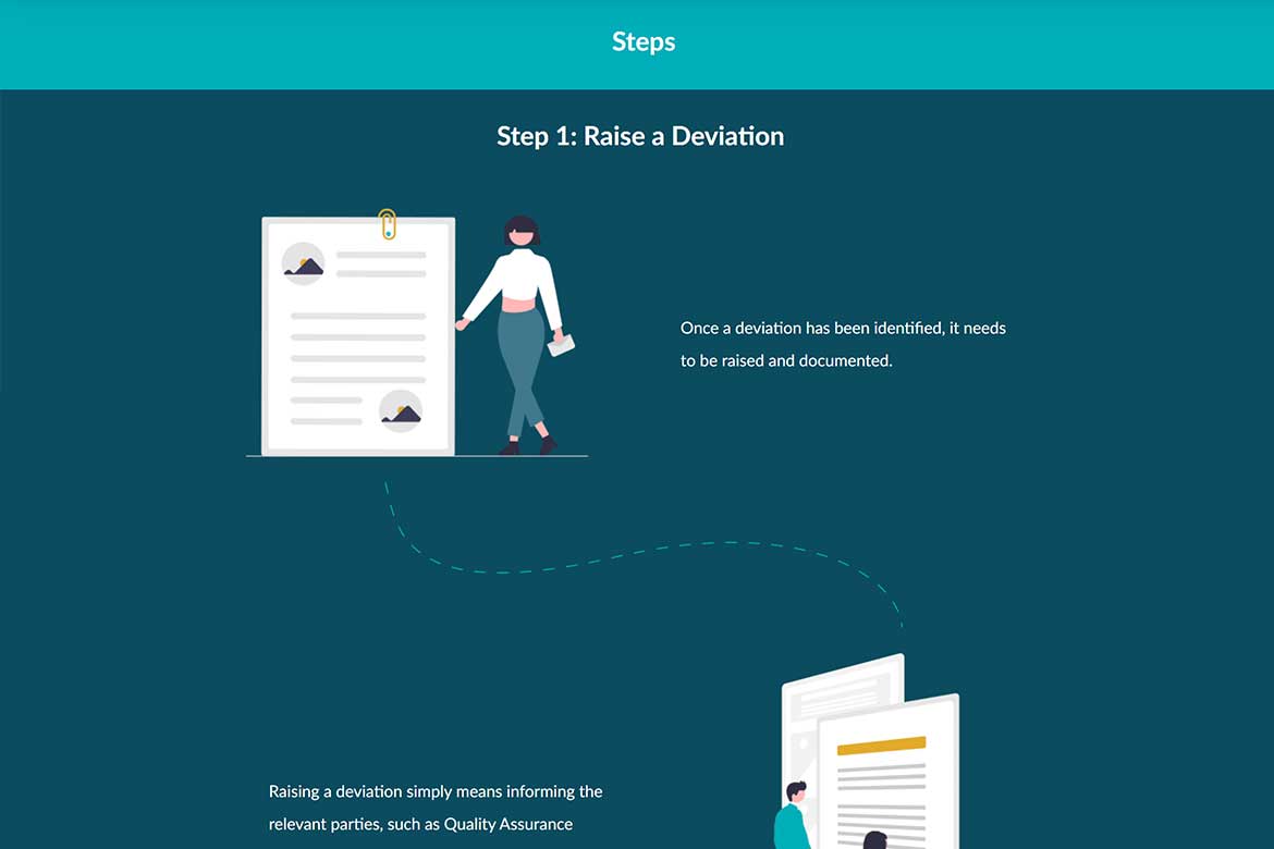 This Articulate Rise module, designed with high-quality instructional design, provides a clear introduction to the full deviation management process in pharmaceutical environments. Learners will understand how and when to record, investigate, and close deviations, along with the key roles and responsibilities at each stage. The module also emphasises the importance of strict timelines and compliance, helping teams strengthen GMP practices and maintain quality standards effectively.